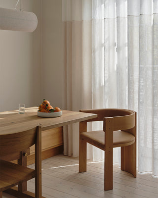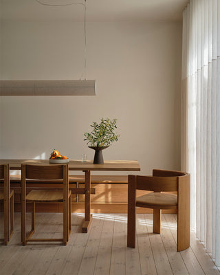 Our home is, first and foremost, our family base. It needs to be a place where both children and adults feel at home. We love calm surroundings and beautiful furniture, but we always prioritise lots of floor space for playing and running around. Every piece of furniture is meant to be used and lived in – including by the children. I love furniture made from honest materials that develop a patina over time. Quality pieces can handle that just fine. I want our home to give a sense of calm – but most of all, it matters that my family is here.