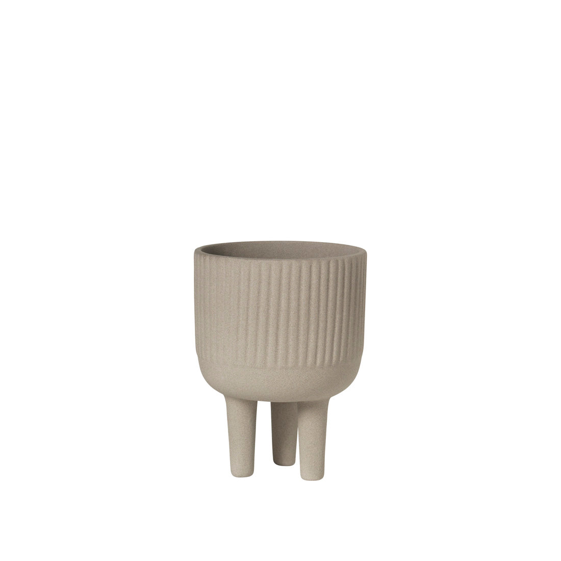 The small bowl has a distinctive appearance in any home interior, making it an eye-catching piece. The Bowl is made from durable terracotta with a beautiful grey engobe. The exterior features a textured band, impressed into the clay. The Bowl is glazed inside making it waterproof and able to carry one of your favourite plants. The entire selection of the three-legged bowls is available in four different sizes. Made to elevate your home interior.