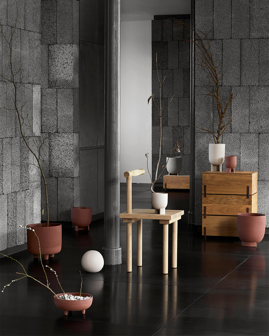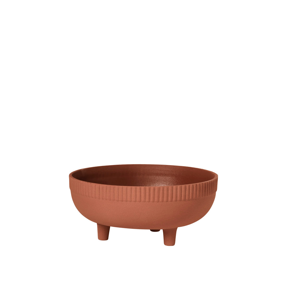 The medium bowl has a distinctive appearance in any home interior, making it an eye-catching piece. The Bowl is made from durable terracotta with warm red engobe. The exterior features a textured band, impressed into the clay. The Bowl is glazed inside making it waterproof and able to carry one of your favourite plants. The entire selection of the three-legged bowls is available in four different sizes. Made to elevate your home interior.