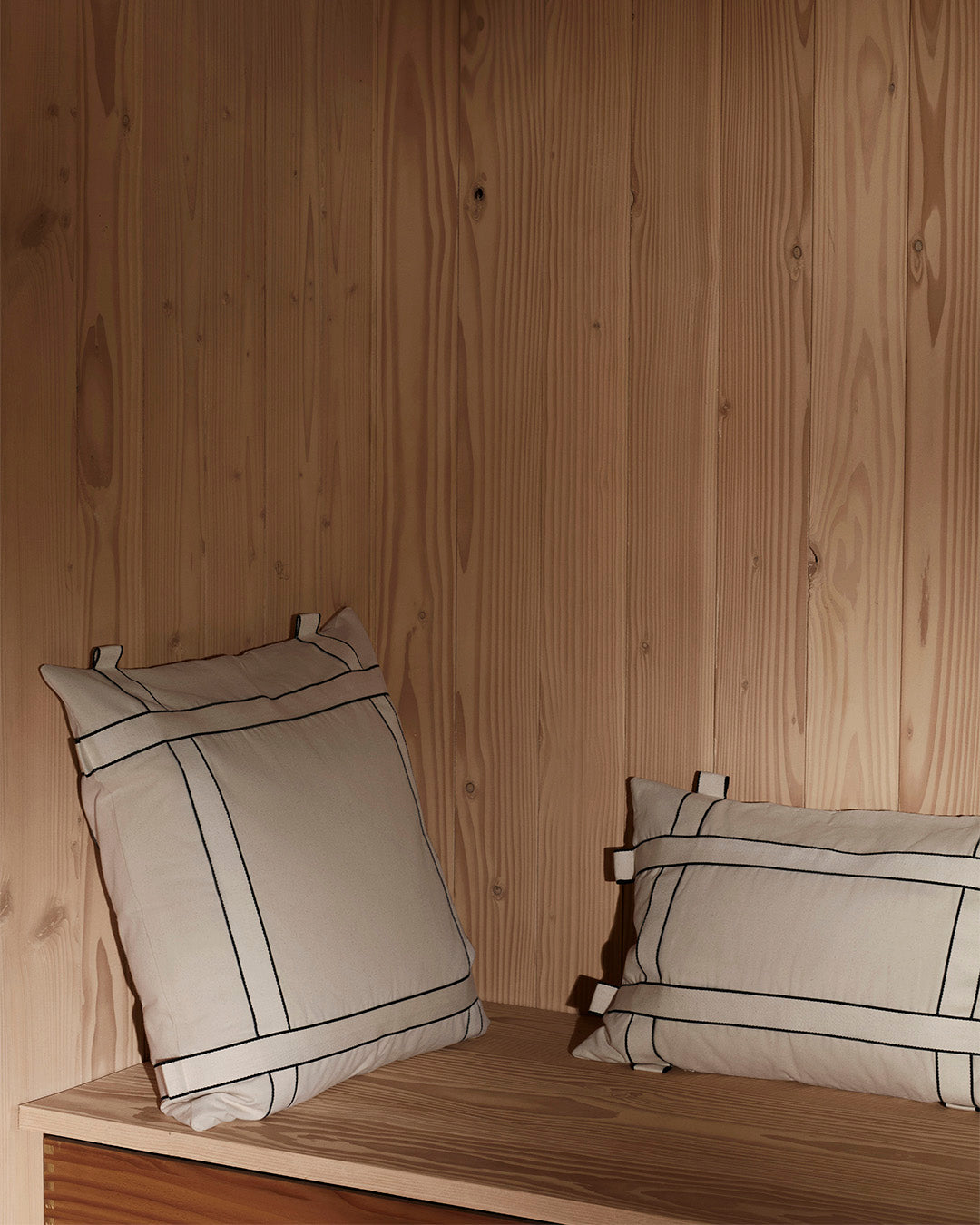 The larger Bow Pillow, crafted from undyed cotton, like the rest of the series, is sumptuously distinctive. The black-striped woven band, inspired by furniture strapping and a signature of the Bow Series, creates a striking contrast against the natural cotton fabric. The pillow’s generous size and the unique protruding strap design add a sophisticated yet comforting presence to any bedroom or living space. Please be aware that the Inner Cushion must be purchased separately.