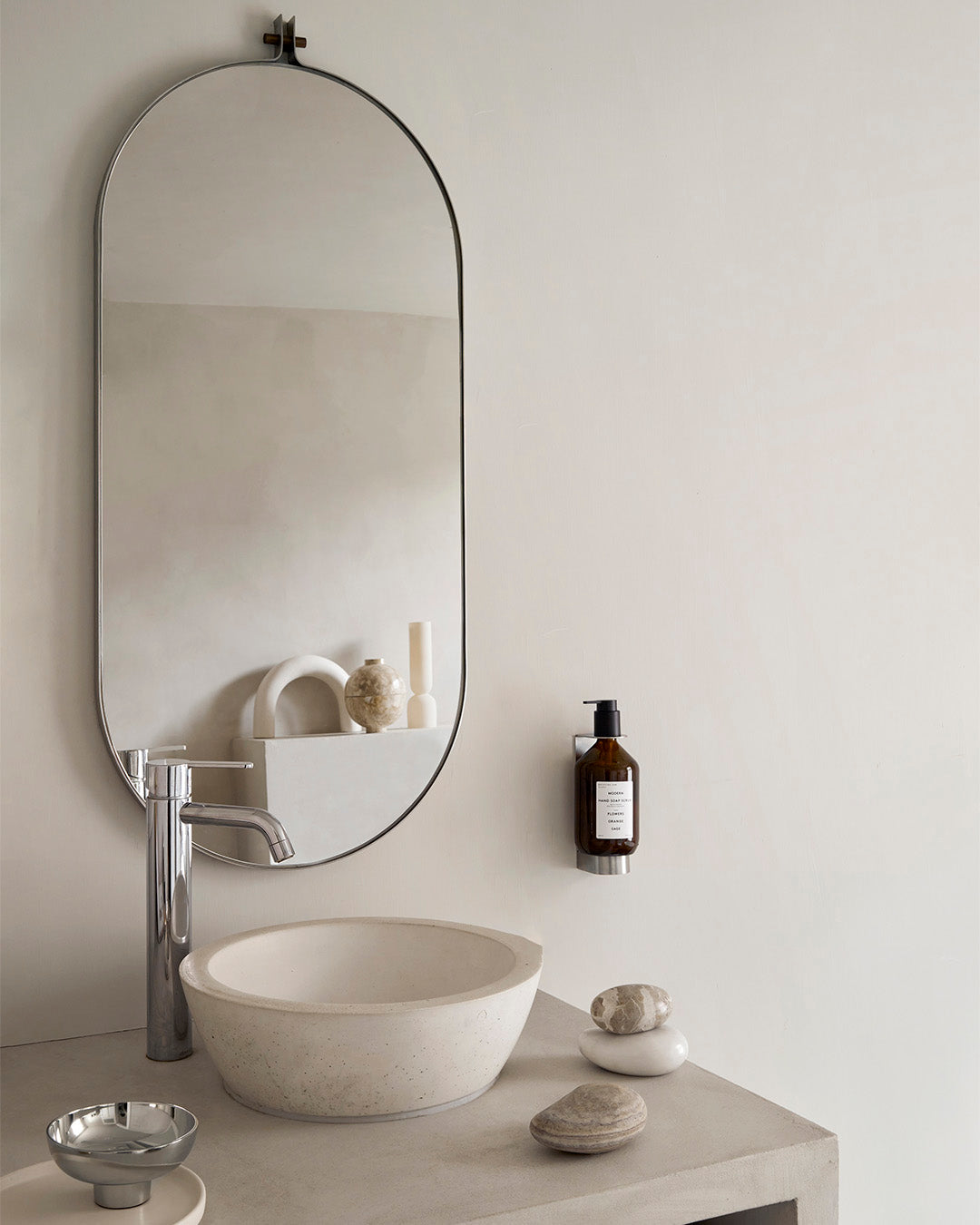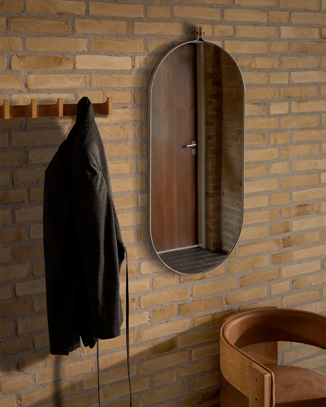 The Dowel mirror is minimalism at its finest – a proponent of the evident beauty in simplicity, and strength in honest design. A mirror sleekly framed in steel, centered with a solid walnut plug. Suitable for your bedroom, bathroom, entrance or your preferred space for reflection.