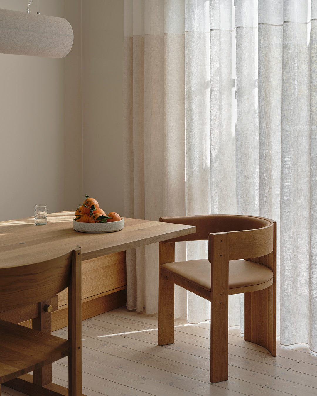Its reflective design evokes a sense of honesty and simplicity. From the arch of the dining chair arises three legs that embrace the seat and backrest in a single movement. This simple aesthetic brings many complex design details, pushing the conventional limits of craftsmanship.The oak wood and walnut tree details are coated with a clear lacquer to protect and enhance its qualities. Lacquer creates a hard, durable surface resistant to scratches, dust, and dirt. The Collector Chair is part of the Collector series. It is also available without leather upholstery.